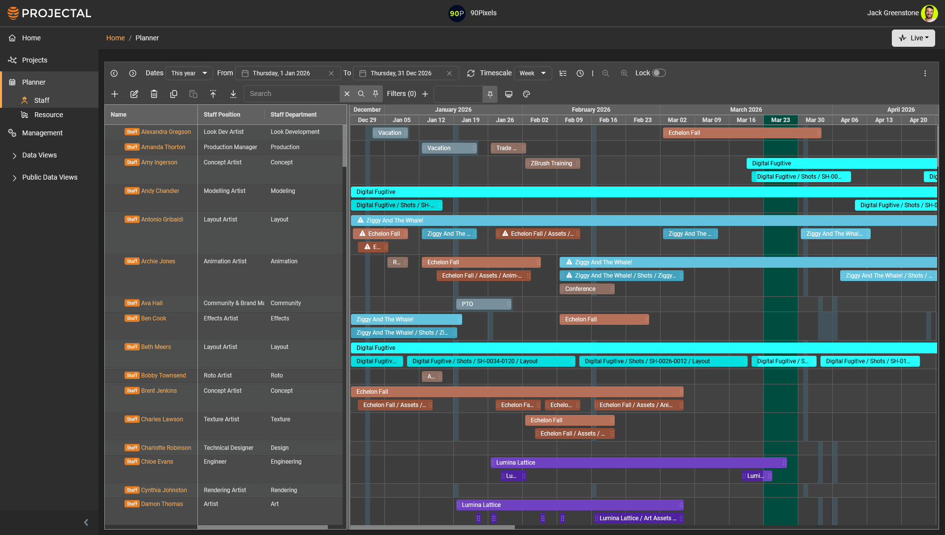 Create and save your favorite views in the Staff Planner and recall them at anytime. You can share them with other Projectal users.