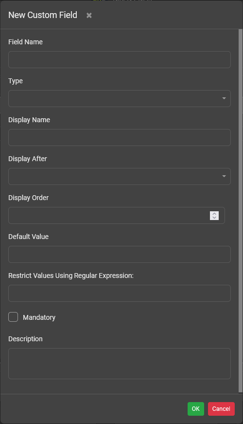 Tip: If you set a custom field to be Mandatory, then you must also set the default value as well.Description